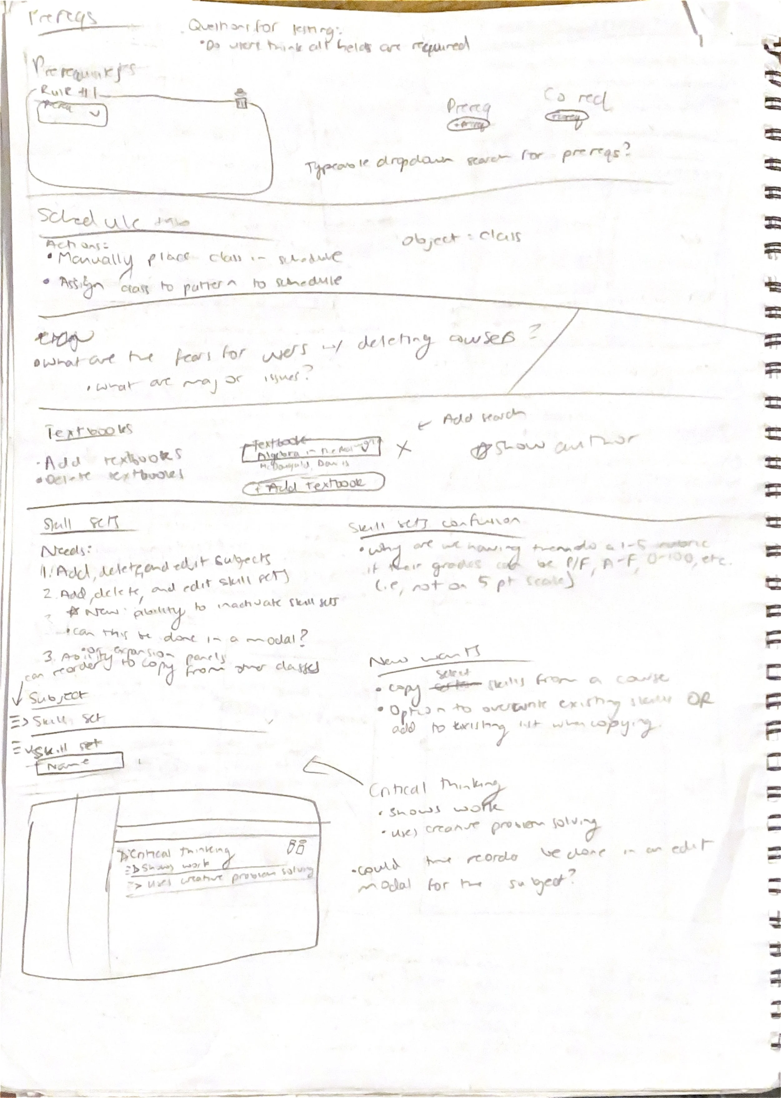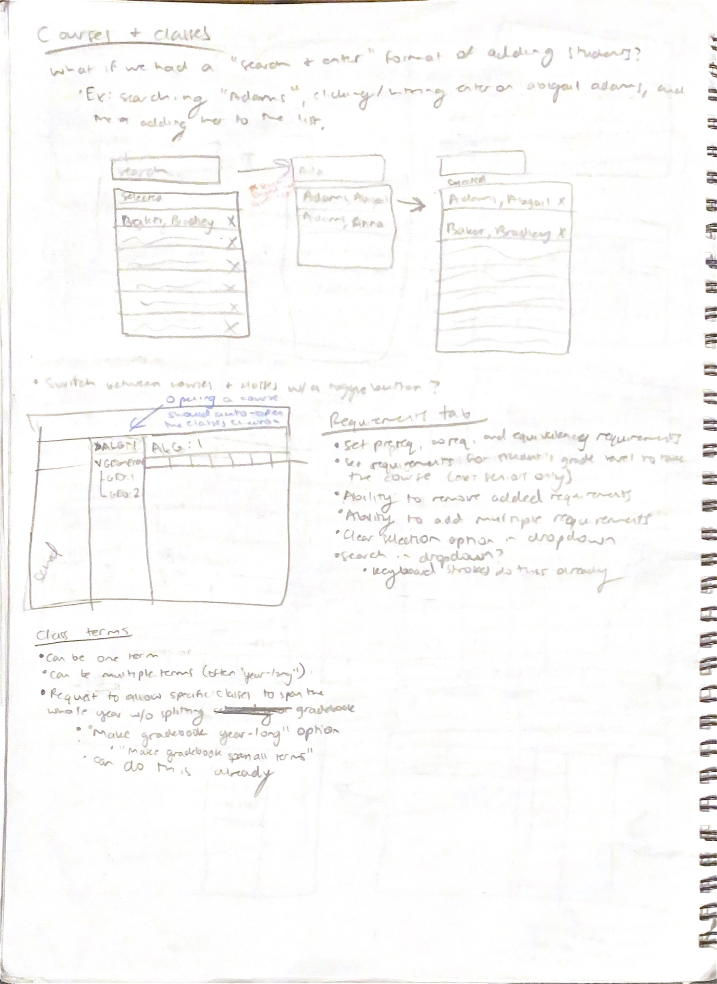 Solution: I implemented all of these user requests into my design, plus an additional request from the product manager to add a prerequisite to require a teacher recommendation for a student to take the course.